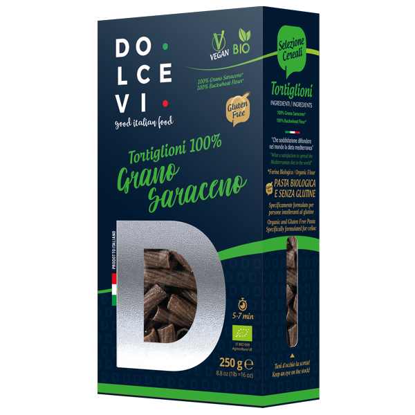 Il Tortiglione è tra i formati di pasta italiana più conosciuti. Prodotta con grano saraceno per chi ha esigenza di cereali alternativi.